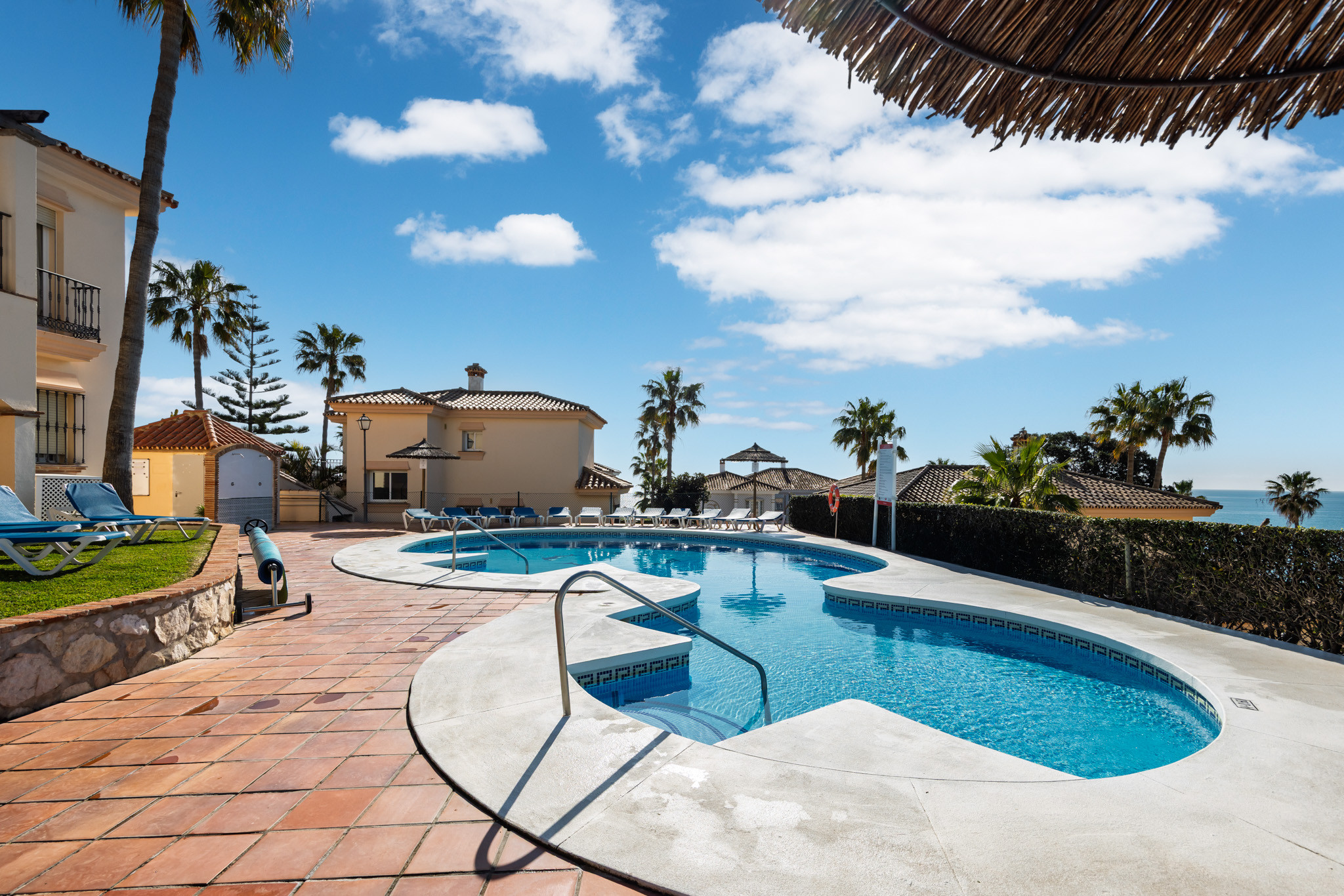Además, podrás disfrutar de las instalaciones compartidas, como dos piscinas (una de ellas climatizada) y pistas de tenis y pádel. El apartamento también cuenta con aparcamiento privado cubierto.